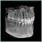 通常のデンタルX線写真では、立体的な歯や顎骨を平面の写真に写し込むため、頬舌的な歯根の状態や歯槽骨の状態を確実にとらえることは不可能で、影絵に近い状態で診断しなければなりませんでした。また、正確な長さの計測等も不可能でした。