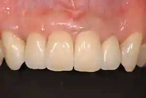 周りの自分の歯と見分けがつかない、調和のとれた美しい歯が入りました。